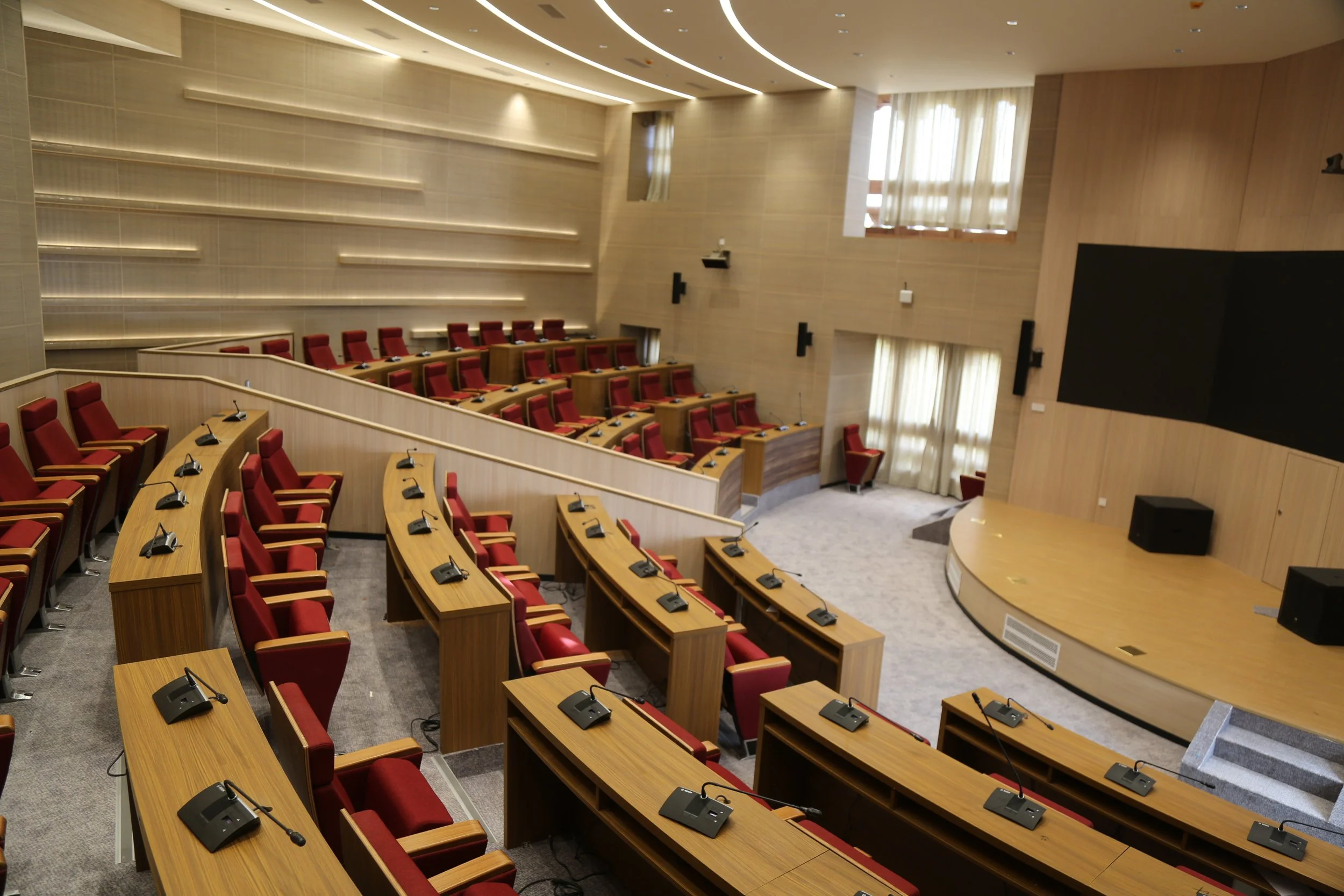Equipped with premium-quality chairs and tables, ensuring maximum comfort and convenience during sessions. It features a state-of-the-art audio-visual system to deliver seamless presentations and facilitate interactive discussions. To enhance the experience, the hall is fully equipped with an advanced HVAC system for optimal temperature control and high-speed internet connectivity to support communication and collaboration.